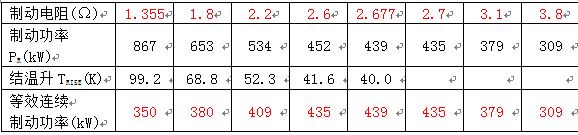 1.首先選取一電阻值,比如3Ω,然后根據此制動電阻值可以知道制動電流和制動功率,利用表二可以算出連續制動時制動晶體管的結溫升TRISE。