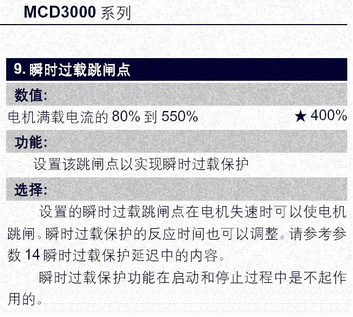 上圖是丹佛斯軟起動(dòng)器瞬時(shí)過(guò)載保護(hù)的整定參數(shù)。