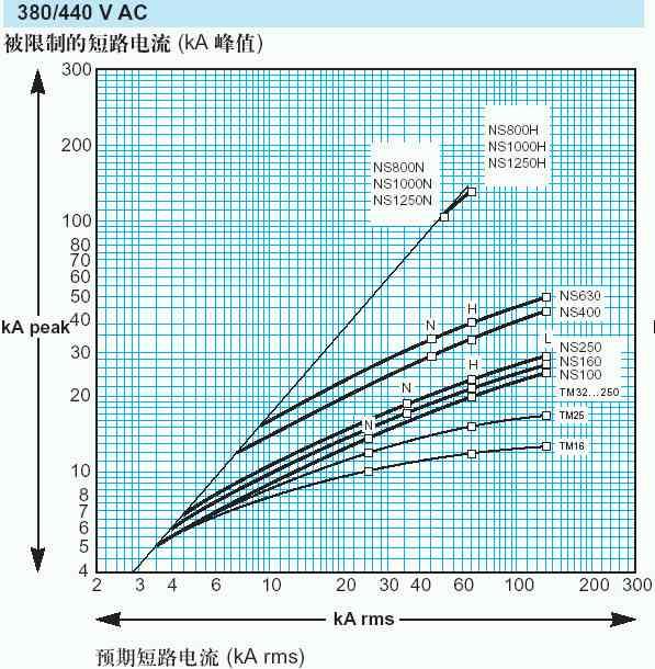 再看一下施耐德NS斷路器的高級(jí)功能 — reflex能量跳閘功能,據(jù)稱在短路故障時(shí)能產(chǎn)生一種強(qiáng)大氣體壓力直接作用于一個(gè)活塞機(jī)構(gòu),使斷路器快速可靠地分?jǐn)?。由于?dòng)作非常迅速,<10ms,所以如同快速熔斷器一樣,具有自然抑制短路電流的功能。其限流特性曲線如下圖: