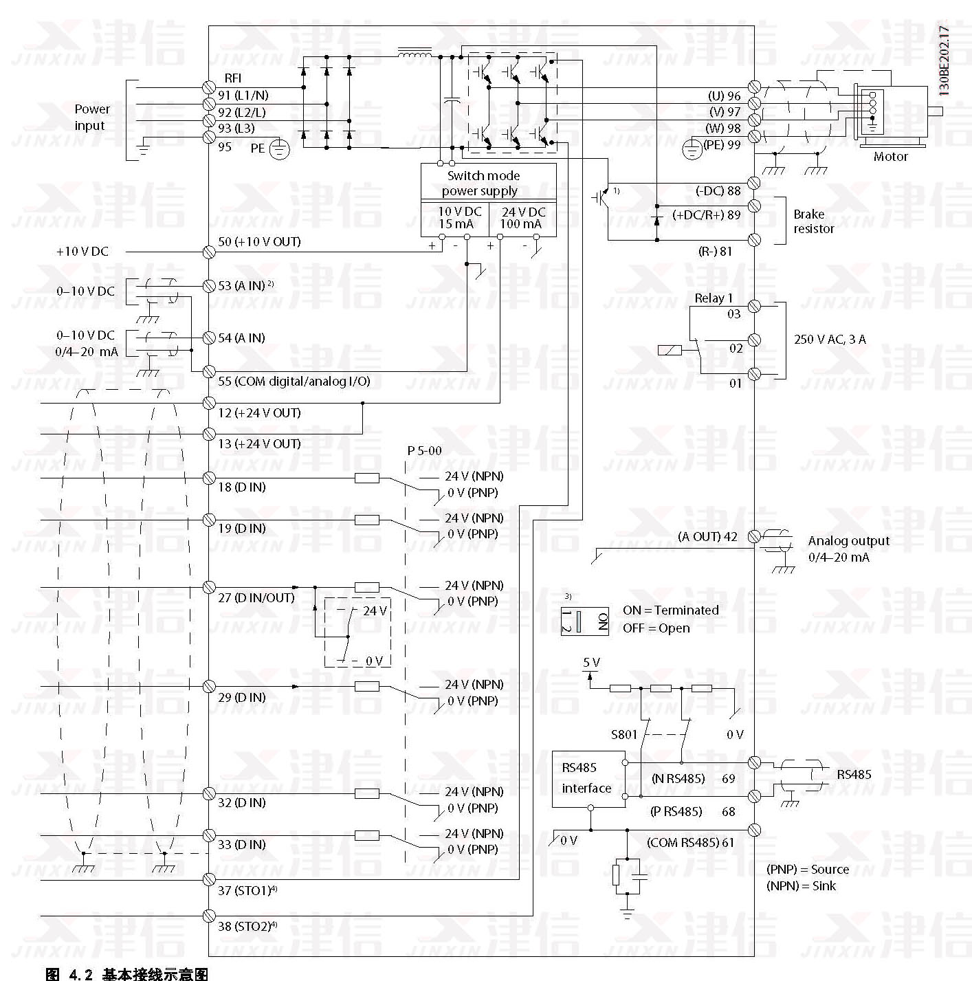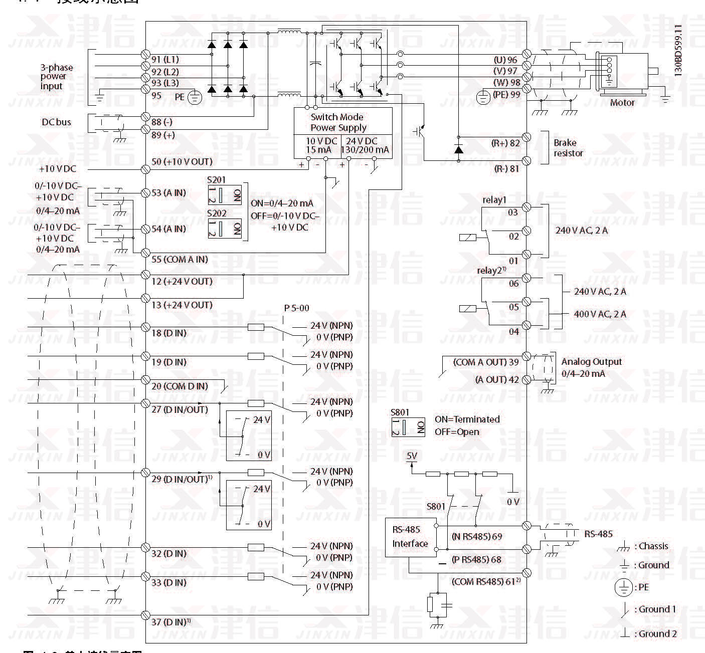 3) J1–J5 中配有單個(gè)直流電抗器; J6–J7 中配有兩個(gè)直流電抗器。