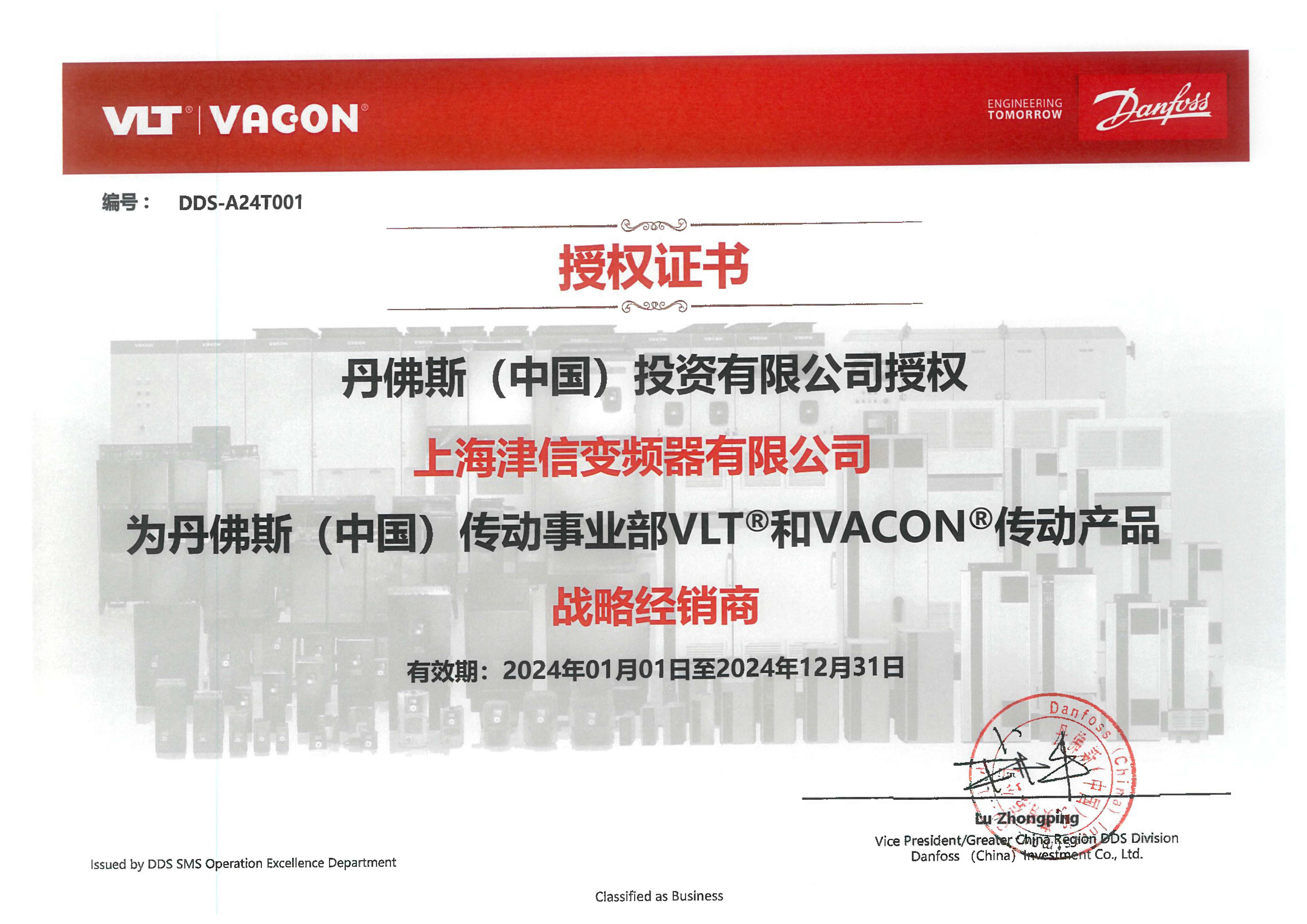 丹佛斯戰略經銷商證書