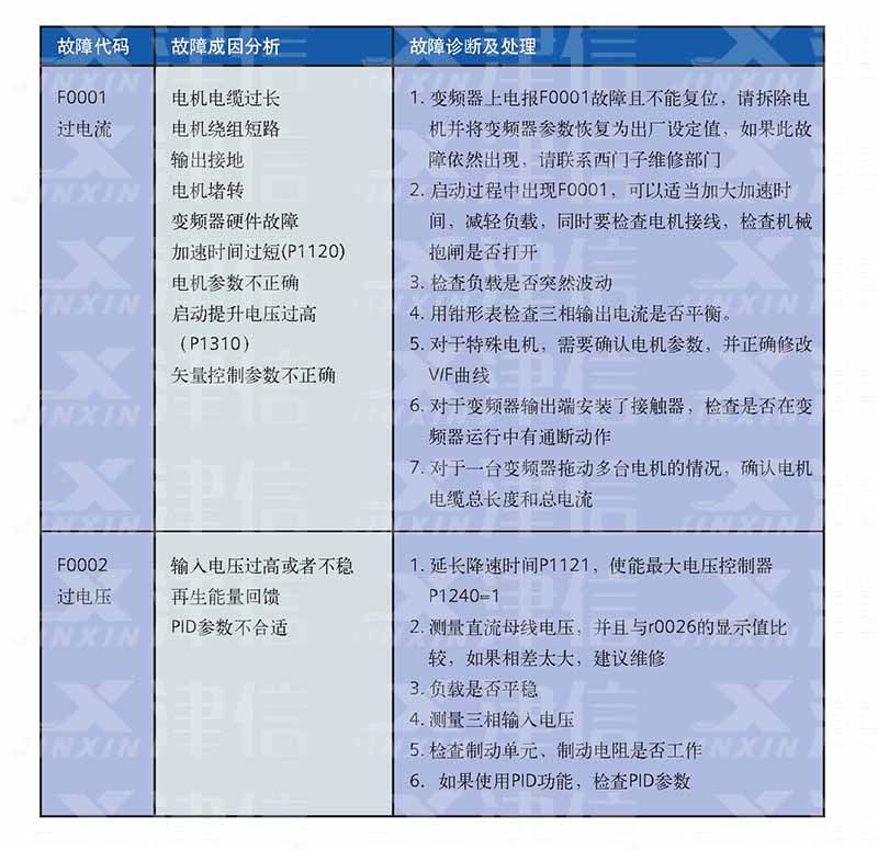 西門子MM440變頻器故障代碼和維修措施
