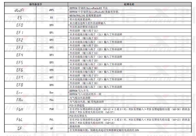 三、dWF1,E5,EF0,EF1,EF2,EF3,EF4,EF5,EF6,EF7,EF8,Err,F(xiàn)An,F(xiàn)bH,F(xiàn)bL,GF故障代碼