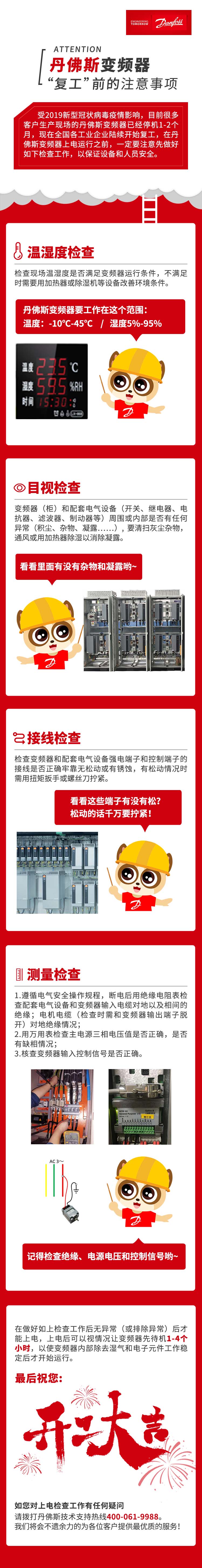 丹佛斯變頻器復工前請做好相應的溫濕度檢查,測量檢查,目視檢查和接線檢查。