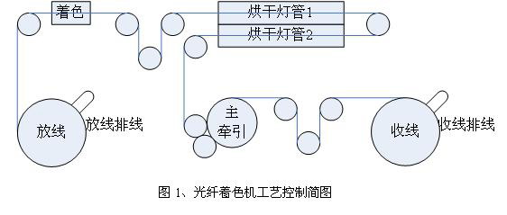 引言:光纖制造行業(yè)的一道關(guān)鍵工序就是光纖著色。該工序的工藝質(zhì)量好壞直接影響光纖產(chǎn)品的質(zhì)量。該設(shè)備控制復(fù)雜,包括放線(xiàn)、放線(xiàn)排線(xiàn)、主牽引、收線(xiàn)和收線(xiàn)排線(xiàn)等運(yùn)動(dòng)控制以及烘干燈管等附屬工藝裝置的控制。尤其是對(duì)收線(xiàn)排線(xiàn)的平整度要求很高。