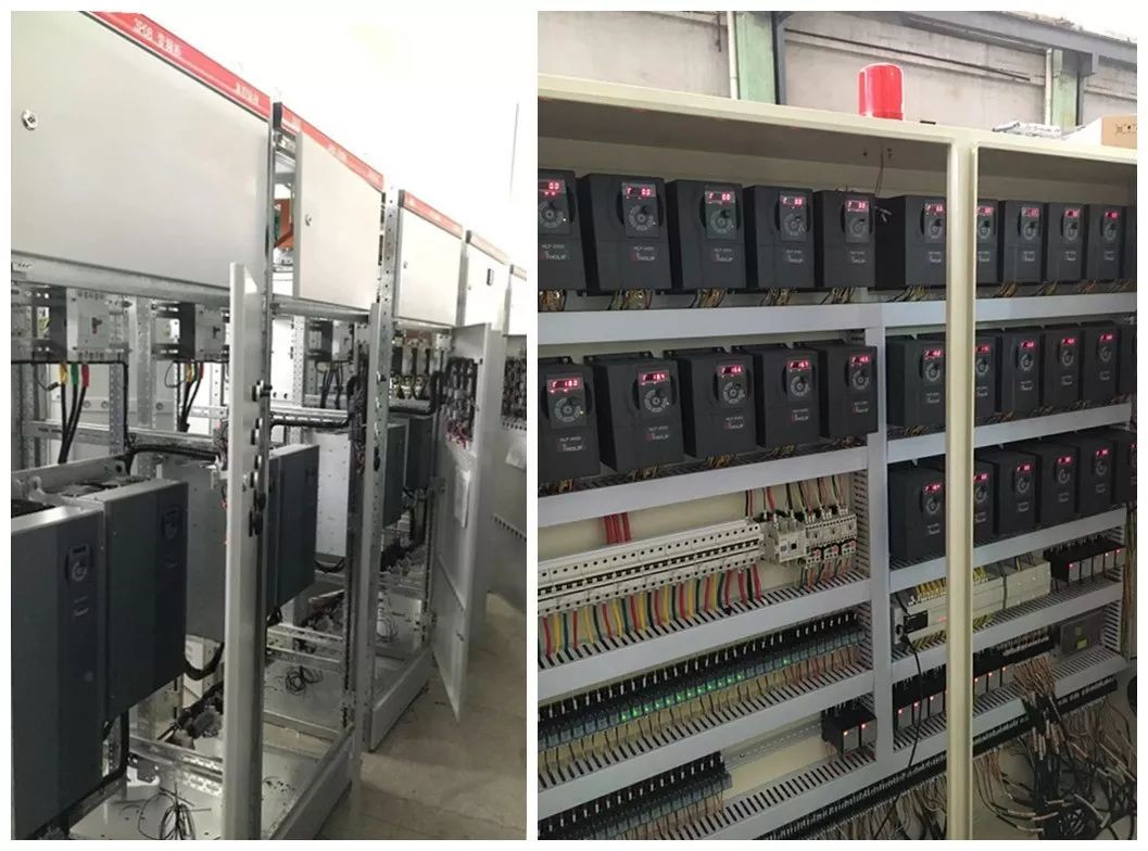 外加空壓機(jī)、羅茨風(fēng)機(jī)等。整線配備電機(jī)200余套,裝機(jī)容量超過1600 kW,可見變頻器在節(jié)能上大有作為。