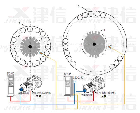 丹佛斯FC300高性能驅動器加上新一代MCO305高速運動專用控制器,可實現定位控制功能。電機可以選用異步或同步伺服電機。支持各種各樣的電機反饋裝置,從增量編碼器、絕對位置編碼器一直到旋轉變壓器。針對丹佛斯MCO305同步控制功能,上海津信變頻器有限公司為客戶在食品飲料行業吹瓶機上進行了技術應用。